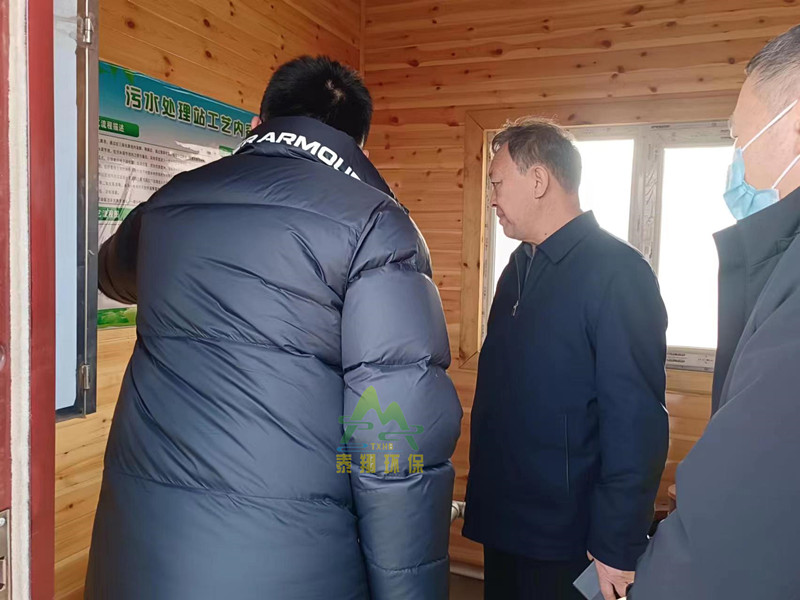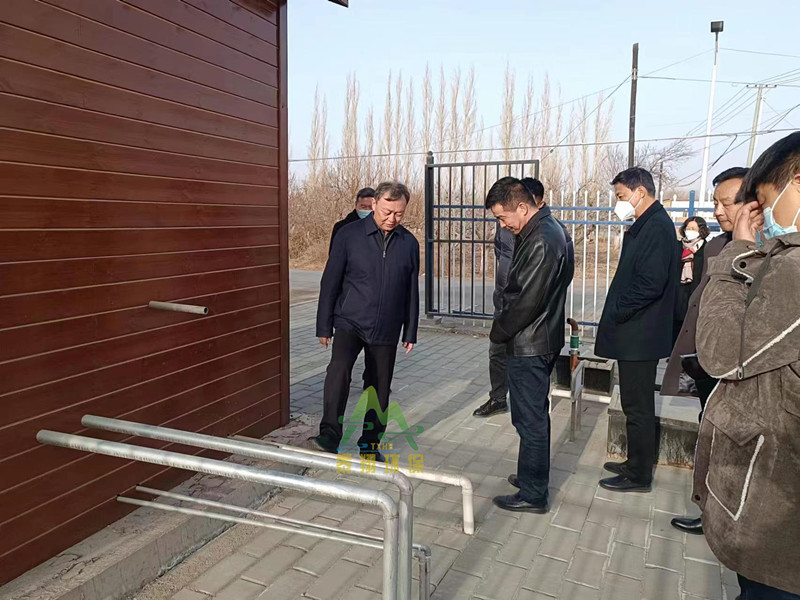 該名目每座污水處置站日處置糊口污水50立方,污水經處置,到達《新疆村落污水排放規范》一級規范。公司總司理王柏翔在名目現場向帶領報告請示污水處置具體環境,帶領賜與了高度評估。